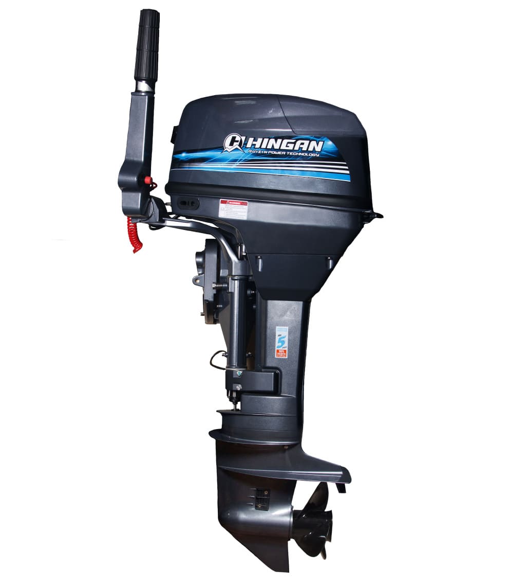 Двухтактный мотор HINGAN 9.9 ENDURO – бензиновый двигатель для лодок и катеров, который весит 41 килограмм. Он мощный, но малогабаритный, поэтому устройство можно перевезти в багажнике автомобиля. Запускается мотор вручную, с помощью троса CDI, а управление у данной модели — румпельное.