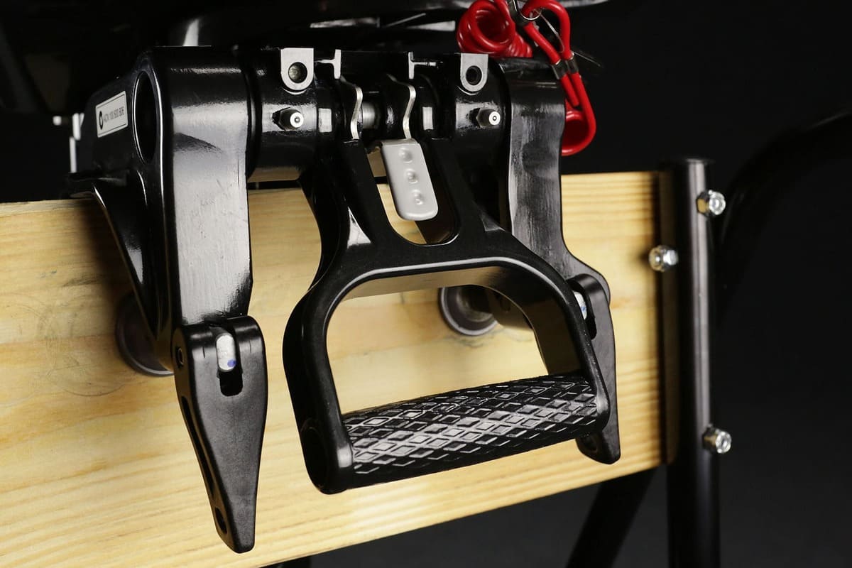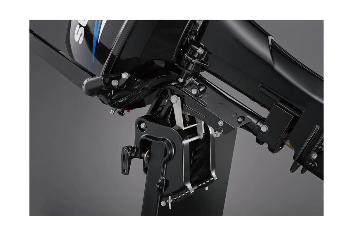 В этой модели применена многоступенчатая система наклона мотора для движения по мелководью, оптимизирована система фиксации для движения задним ходом, а также улучшена выхлопная система, что позволило снизить уровень шума.