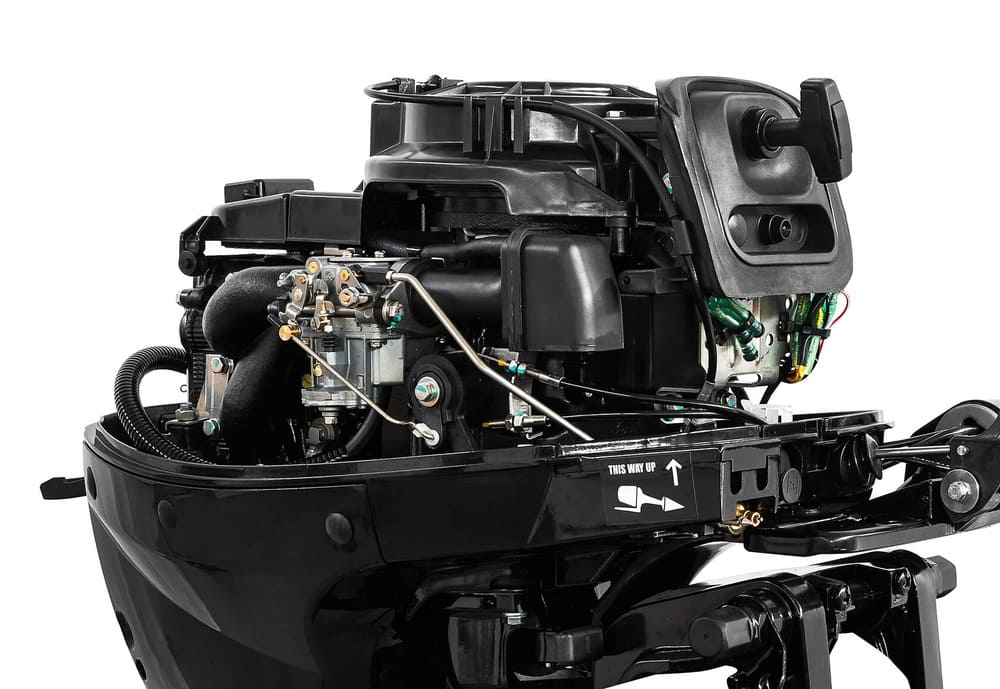 Четырехтактный мотор, не требующий регистрации. Имея фактическую мощность в 20 л.с. оформляется по документам как 9.9 л.с.