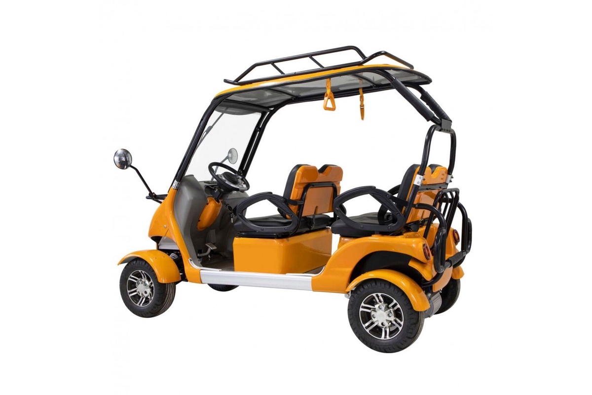 Гольфкар GreenCamel Сонора A40 New — четырёхместный электрический транспорт, который подходит для перевозки пассажиров в гольф-полях, коммерческих и индустриальных сферах, таких как курорты, заводы, склады, аэропорты, парки.