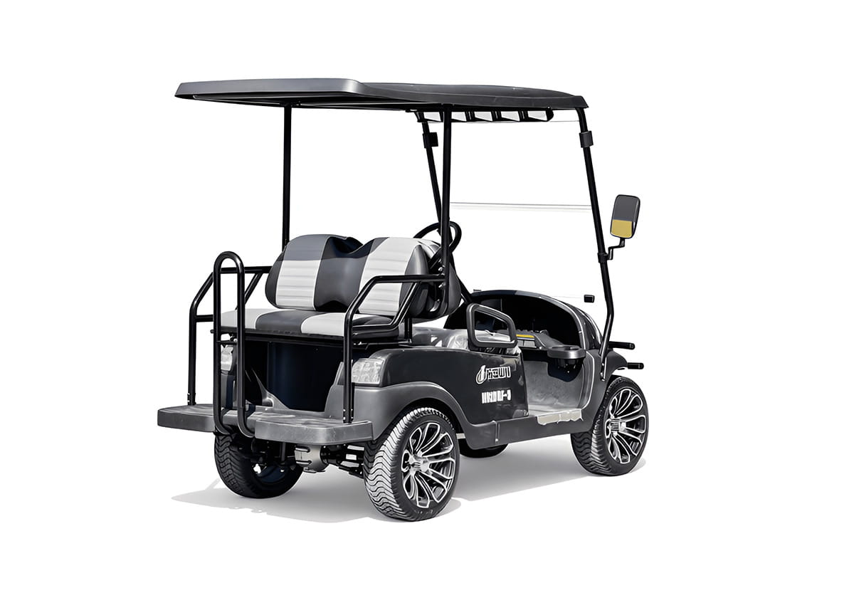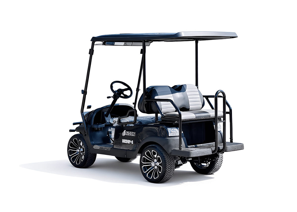 Гольфкар HiSUN может одновременно перевозить 4 человека (включая водителя) и имеет надежный и долговечный мотор, способный проехать без подзарядки не менее 70 км.