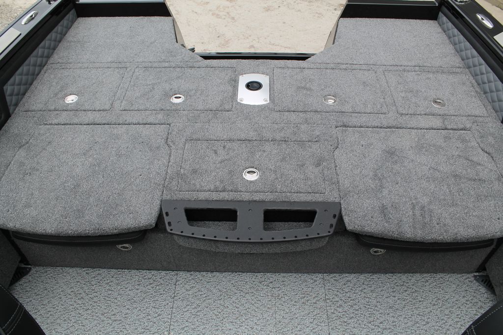 На планшире расположены швартовые утки Attwood (6 шт.), обеспечивающие надежное сцепление для комфортной эксплуатации на воде. С наружной стороны есть кнопки для крепления тента, а внутри — Т-паз для снастей. На носу катера находятся три ассиметрично скомпонованных рундука: два небольших впереди и один больший справа. Перед большим рундуком размещен аэратор объемом 60 литров. Для отделки кокпита и носовой палубы использован винил Maridek.