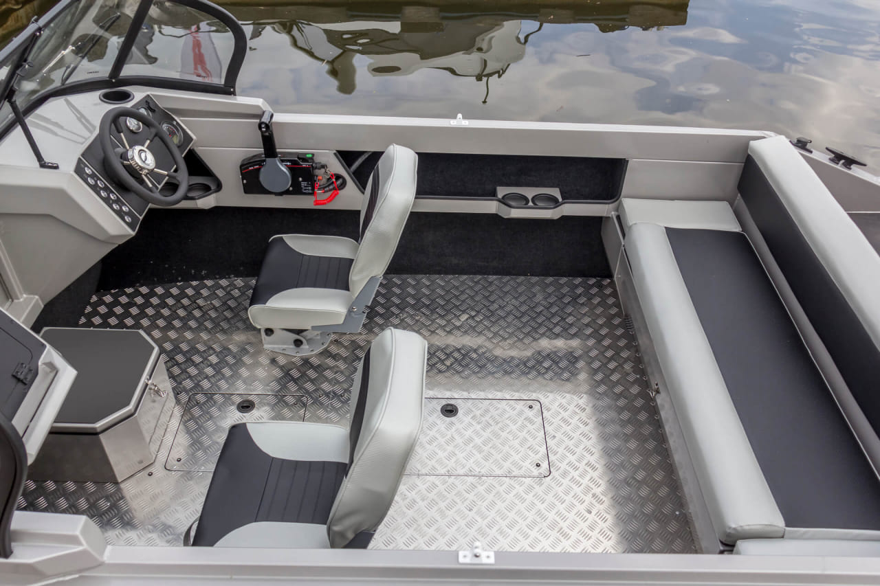 - Стационарный топливный бак объемом 81 литр обеспечивает достаточный запас топлива для продолжительных рейсов и рыбалки.