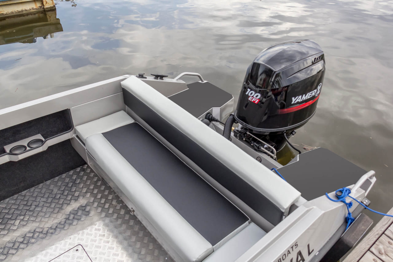 - Лодка рассчитана на работу с подвесным двигателем, устанавливаемым на транце, что обеспечивает удобство эксплуатации и обслуживания.