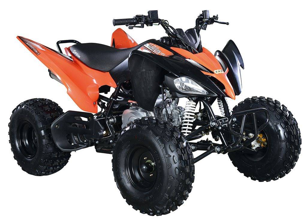 ABM Scorpion 125M – модель спортивного квадроцикла для взрослых и подростков в возрасте до 16-ти лет. Отличается мощностью, проходимостью, надежностью, быстрым набором скорости, комфортом и доступной для своего класса ценой. Может эксплуатироваться в условиях сложного бездорожья (заболоченная местность, песок, жидкая грязь).