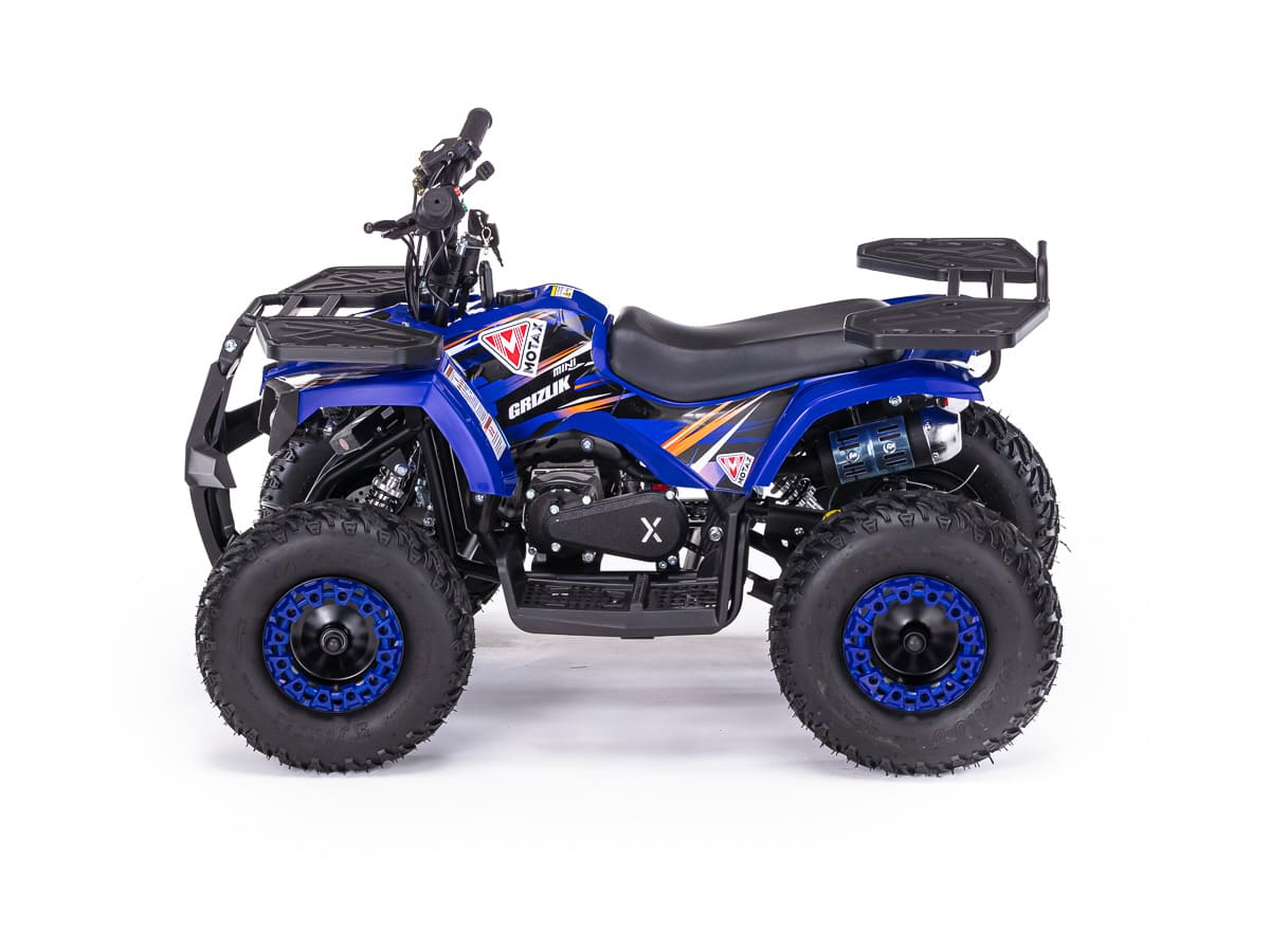 Детский бензиновый квадроцикл MOTAX GRIZLIK X16 (ES, BW) с электростартером и увеличенными колесами — это специальный АТВ для райдеров с 3 до 8 лет. Данная модель сочетает удобство, безопасность и простоту в использовании. Бензиновый квадроцикл Мотакс развивает максимальную скорость до 40 км/ч; обладает экономичностью.