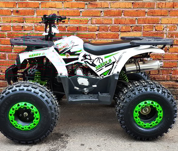 Квадроцикл MOWGLI HARDY 8 — это детский квадроцикл, который подходит юным райдерам от 6 до 18 лет. Данная модель отличается комфортной конструкции и удобной формой. Бензиновый квадроцикл Маугли оснащен вариаторной трансмиссией и может развивать максимальную скорость до 60 км/ч. Все характеристики в квадрике подобраны таким образом, чтобы ваш ребенок смог в безопасности обучаться езде на мототранспорте.
