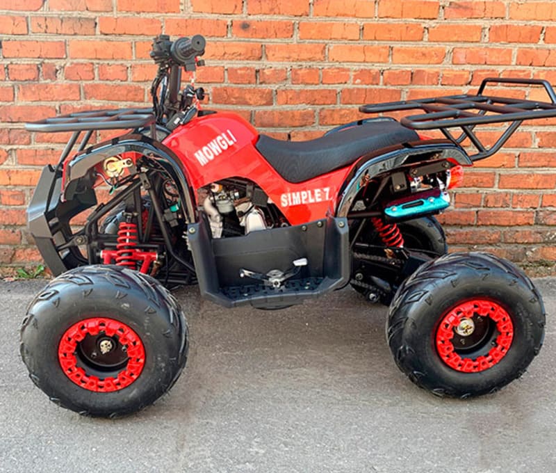 АТВ Маугли Симпл оснащен бензиновым двигателем мощностью 10 л.с. и объемом 49 куб. см., что обеспечивает отличную проходимость и динамику на дороге. Благодаря системе воздушного охлаждения, данная модель ATV подходит для активного отдыха, спорта и преодоления легкого бездорожья.