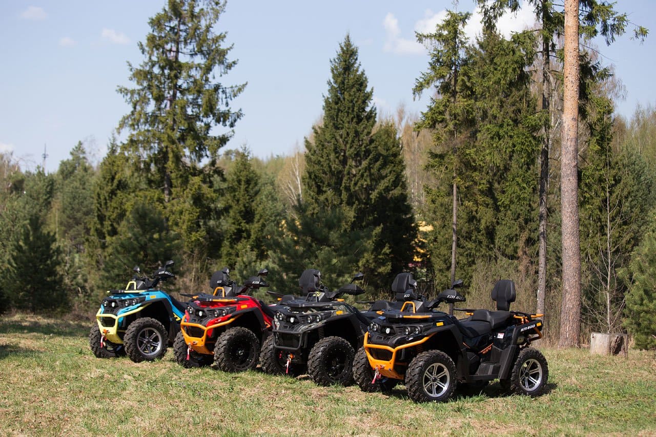 Квадроцикл АТВ РМ оснащен V-образным 2-цилиндровым бензиновым двигателем (800 кубов, 60 л.с.) с жидкостным охлаждением, карбюраторной системой и электростартером. Вариаторная трансмиссия и полный привод с карданной передачей обеспечивают плавный разгон до 100 км/ч даже при полной загрузке. Модернизированная подвеска и крутой угол атаки переднего бампера позволяют штурмовать лесные завалы и глубокую грязь.