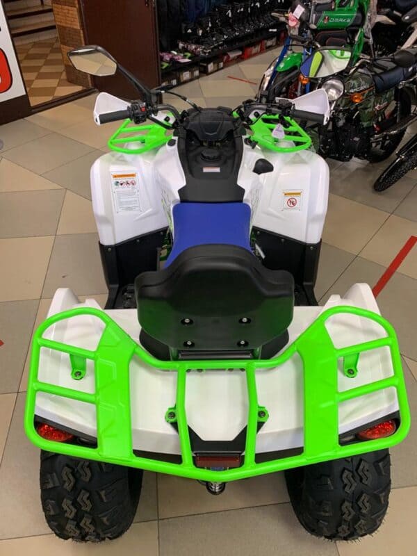 Квадроцикл подходит для сельскохозяйственных (с/х) работ, охоты, рыбалки и транспортировки грузов (грузоподъемность до 200 кг), благодаря багажным креплениям и возможностью буксировки прицепа. Комфортная посадка, защита от брызг и экономичный расход топлива делают его идеальным для длительных поездок по бездорожью.