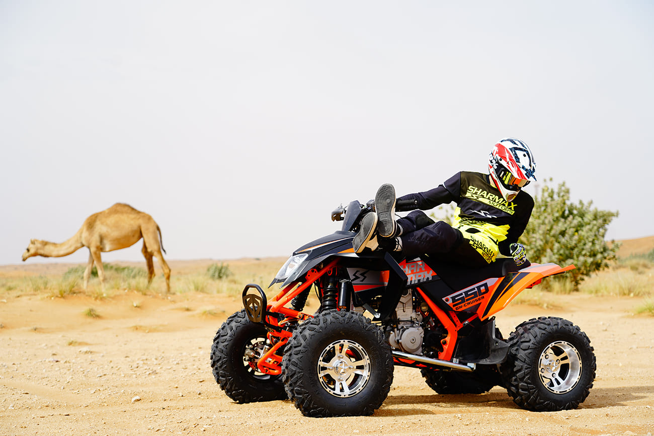 Sharmax 550 GX-Cruiser был создан для любителей скорости и адреналина. Быстрые старты, отличная манёвренность и высокие динамические показатели, делают его отличным выбором для ралли и скоростных прохватов. Квадроцикл уверенно и быстро набирает скорость, а его стабильность на прямых участках и в поворотах обеспечивается прочной подвеской и качественными тормозами.