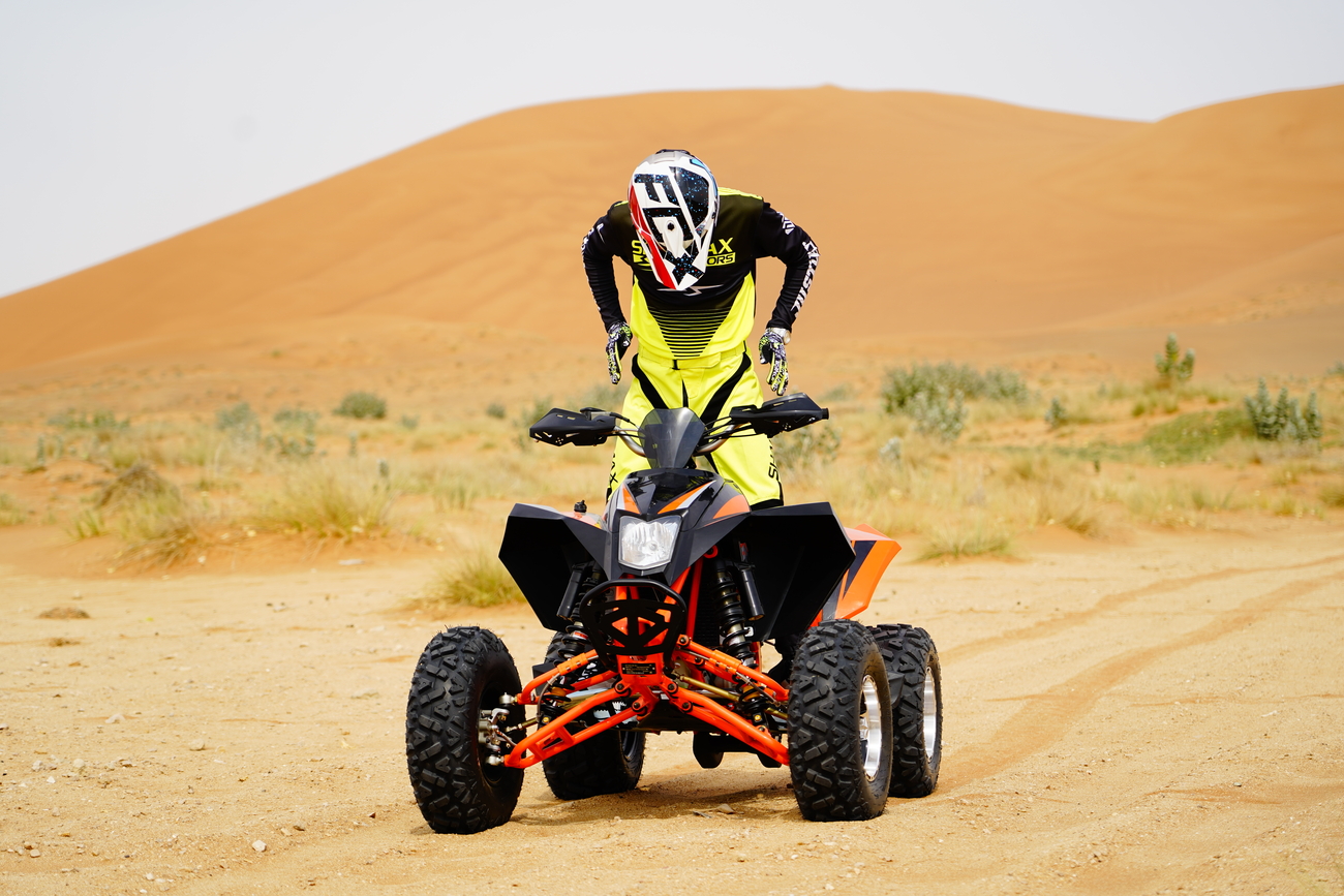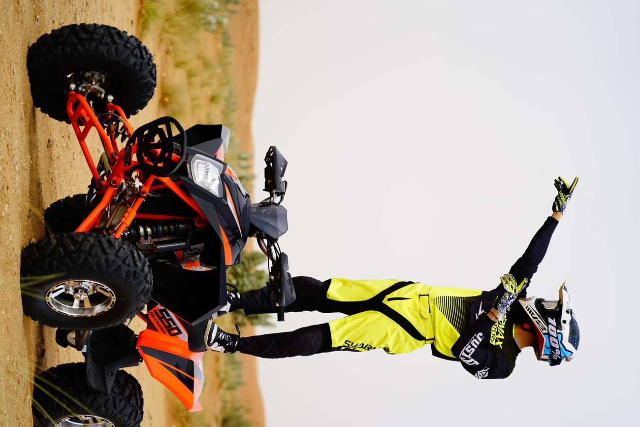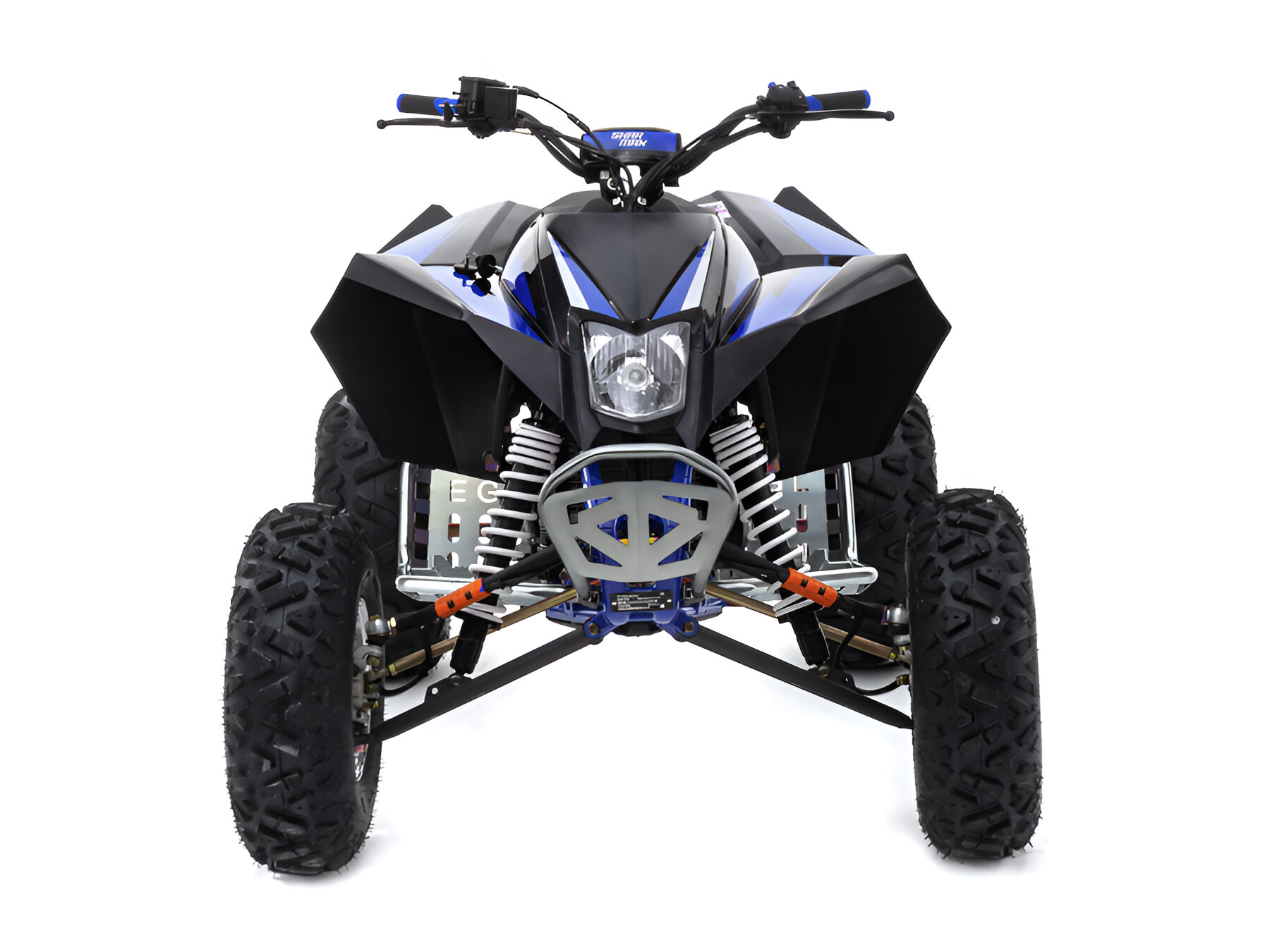 Спереди установлены двойные А-образные рычаги, ширина между колесами 1230мм, Это даёт невероятную устойчивость квадроциклу, что делает его манёвренным, и в то же время безопасным.