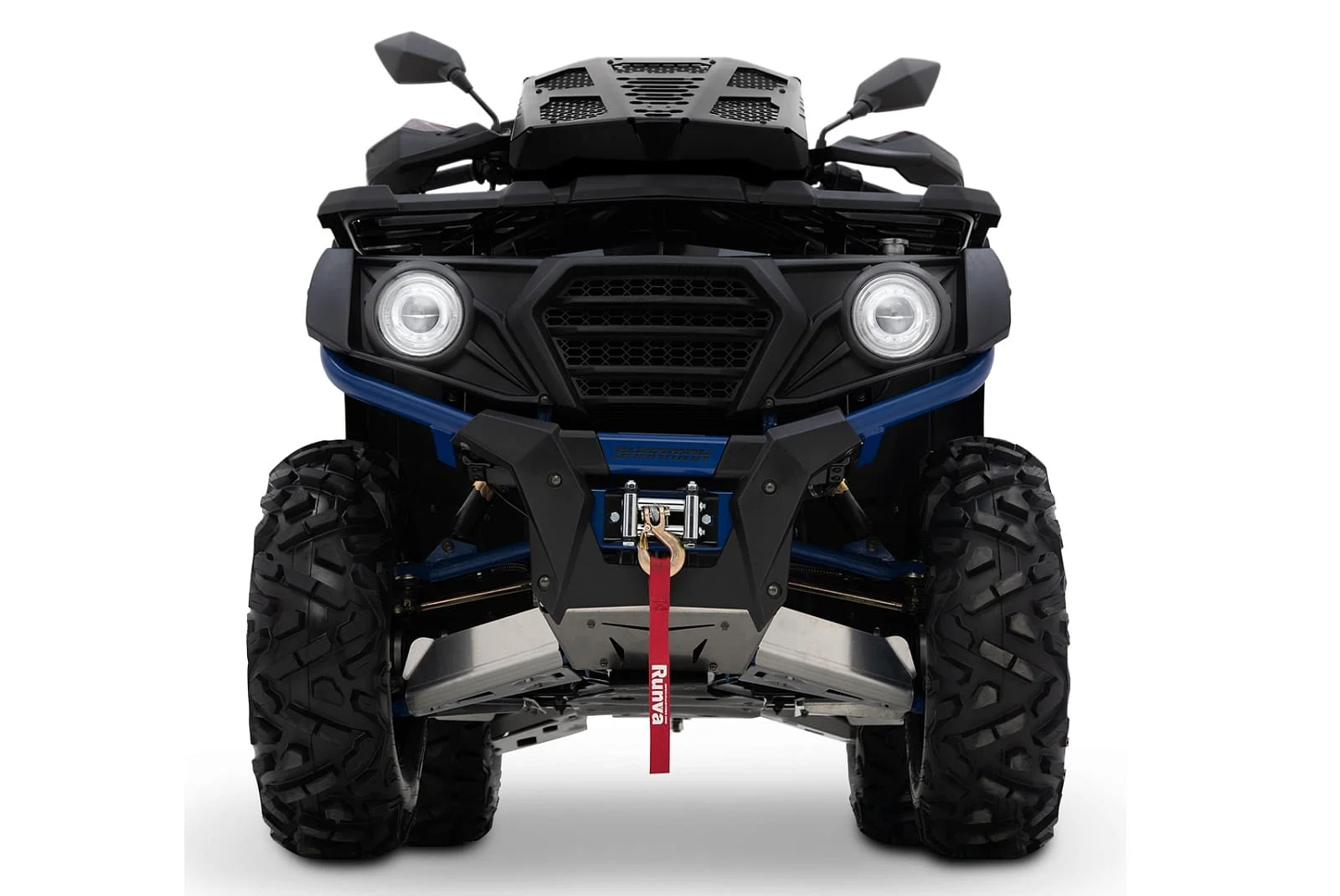 Лебёдка на 3500 lbs (более 1500 кг) идёт в комплекте, с управлением на руле и обеспечивает большие возможности на непроходимых дорогах.