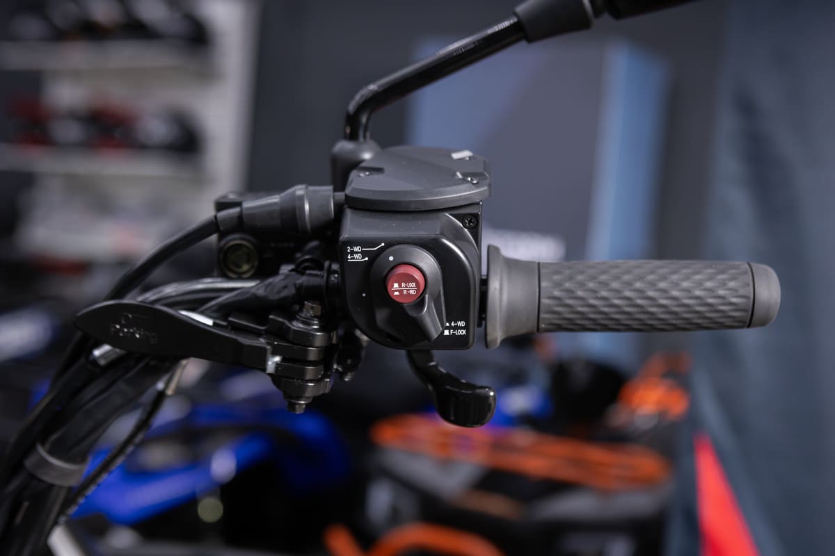 Проходимость в любых условиях. Благодаря приводу 2WD / 4WD / 4WD Lock и управляемой блокировке дифференциала (передней и задней) квадроцикл уверенно держится на любом покрытии. Дорожный просвет в 295 мм и колёсная база 1480 мм позволяют преодолевать препятствия и передвигаться по труднопроходимой местности.