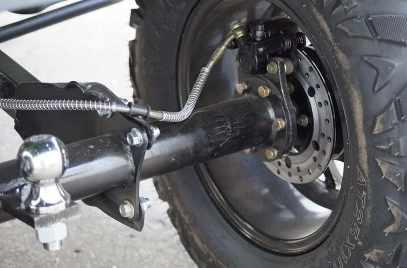 Квадроцикл Сталкер 250 Хаммер останавливается уверенно благодаря ручным и ножным дисковым гидравлическим тормозам. Передняя рычажная подвеска на шаровых опорах обеспечивает стабильность на любом рельефе. Запуск двигателя — простым нажатием кнопки электростартера на руле, где также расположен рычаг пускового обогащения карбюратора.