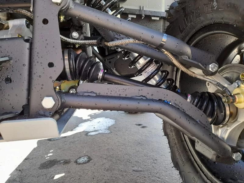 Мотовездеход оснащен двигателем объемом 830 куб. см. и мощностью 69 л.с. с жидкостным охлаждением, который обеспечивает высокую скорость. Двигатель гарантирует отличную производительность и способность преодолевать крутые склоны и труднопроходимые участки, что делает его идеальным для активного отдыха на природе.
