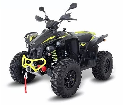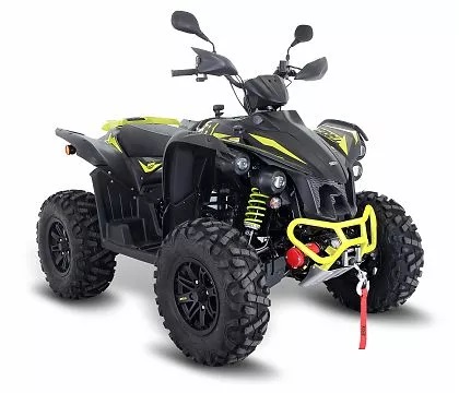 Хромомолибденовая рама квадрика ТГБ выдерживает нагрузки, а габариты 195×124×128 см обеспечивают маневренность. Агрессивный стиль подчеркивают 14-дюймовые колеса, клиренс 290 мм и защитные дуги. Матовое покрытие кузова маскирует царапины, сохраняя презентабельный вид.
