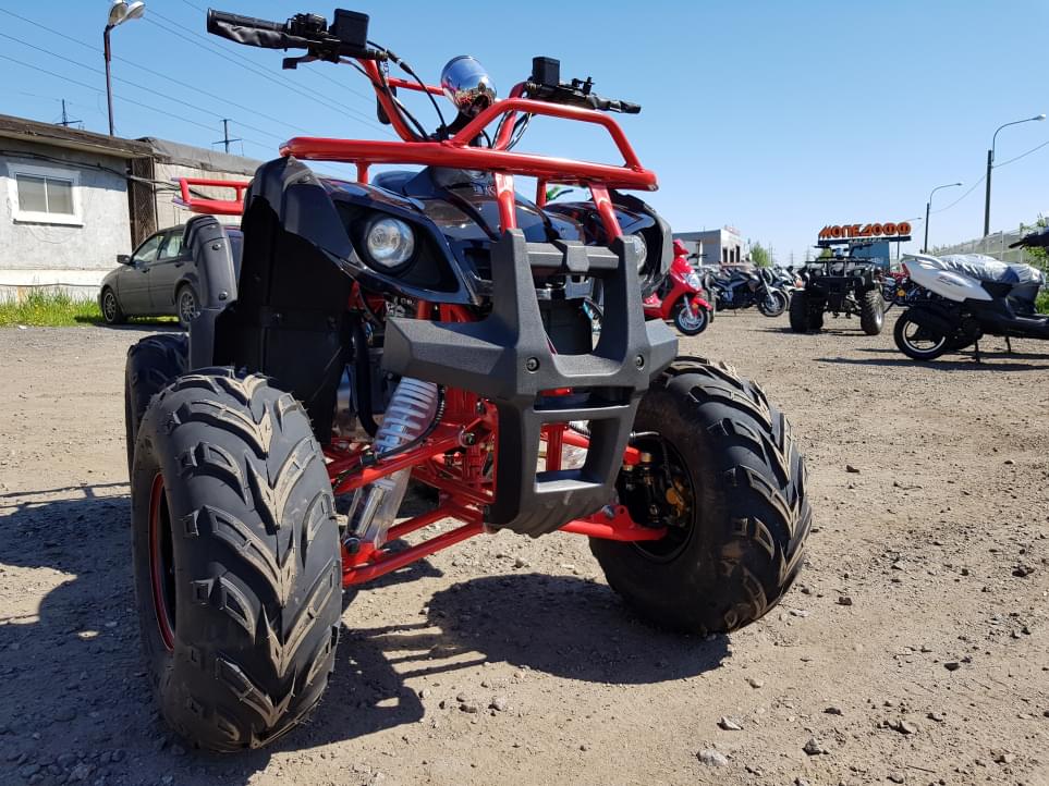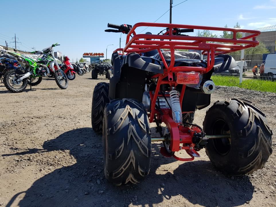 Возможно принудительное ограничение скорости при помощи ограничительного болта. На квадроцикле установлен вариатор (автоматическая коробка передач), что сделает управление квадроциклом максимально простым. Ручной тормоз сделает управление максимально понятным и информативным. Максимальная нагрузка для детского квадроцикла - до 100 кг. Наиболее комфортно на этой модели квадроцикла будет ребенку с ростом до 130см.