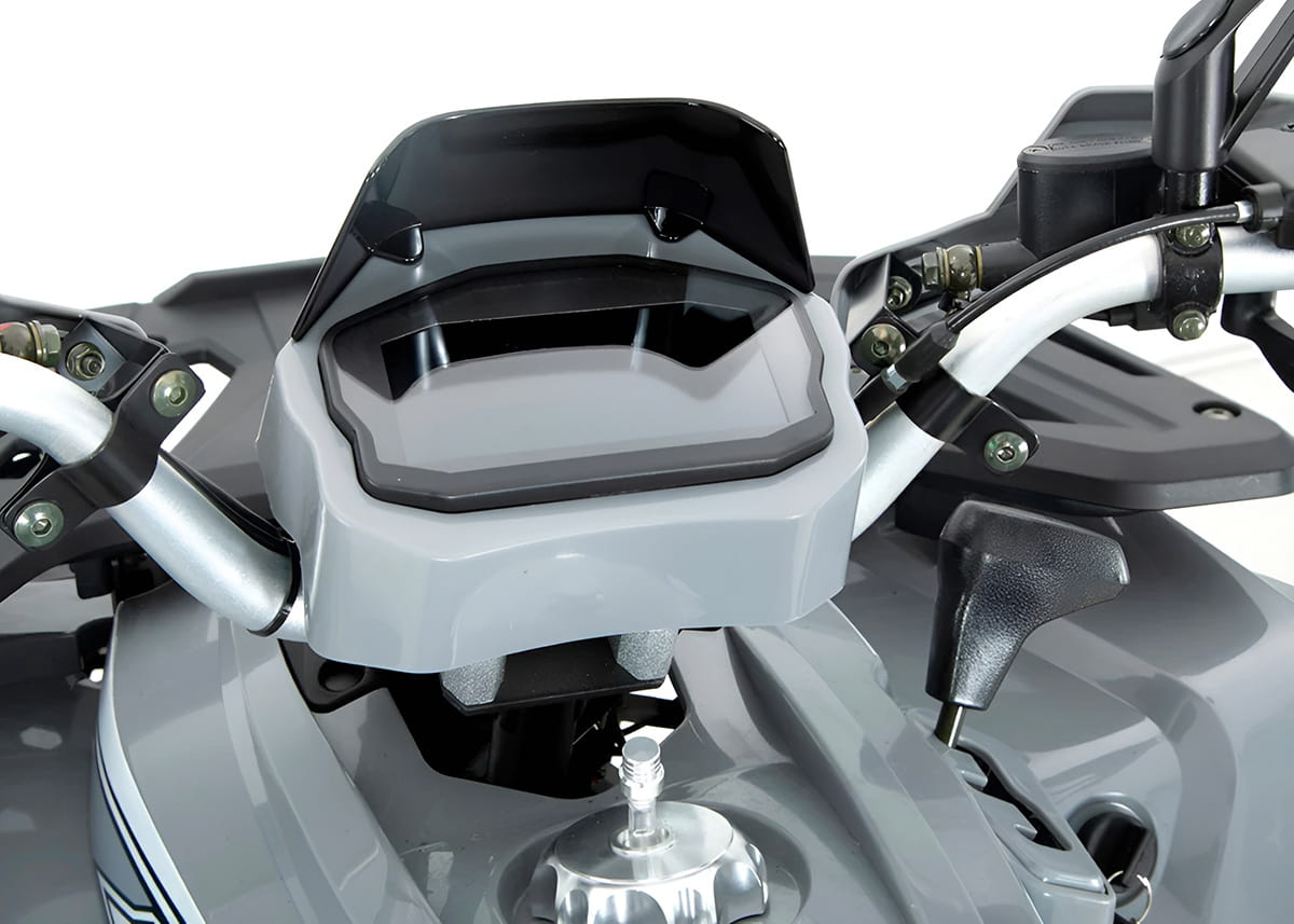 Квадроцикл оснащен одноцилиндровым четырехтактным бензиновым двигателем объемом 200 куб. см, мощность которого составляет 17 л.с. Это позволяет развивать максимальную скорость до 70 км/ч, а также уверенно преодолевать различные типы местности. Благодаря балансировочному валу двигатель работает плавно, значительно снижая вибрацию, что повышает комфорт езды.