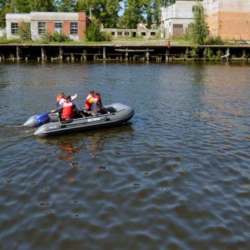 Надувная лодка выполнена с ярко выраженной килеватостью и отличается высокой прочностью благодаря ткани ПВХ плотностью 1200 гр./кв.м. на баллонах и на днище. Благодаря сложному рельефу дна лодка обладает отличительной устойчивостью и уверенным выходом на глиссирование.
