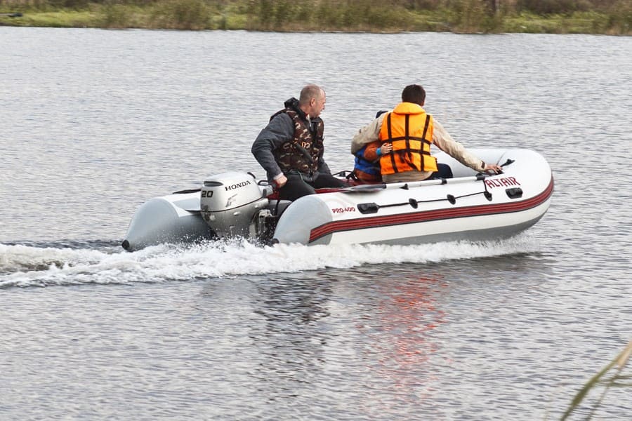 Надувная лодка ПВХ Altair Pro Ultra 400 высококлассное моторное судно, рассчитанно на перевозку семи человек. Изготовлено из плотного, многослойного ПВХ материала. U-образный баллон обладает переменным диаметром и делится на 4 герметичных секции. На каждой из них находится воздушный клапан. У данной модели килевое днище (кильсон), которое повышает устойчивость, а также способствует мореходности судна.