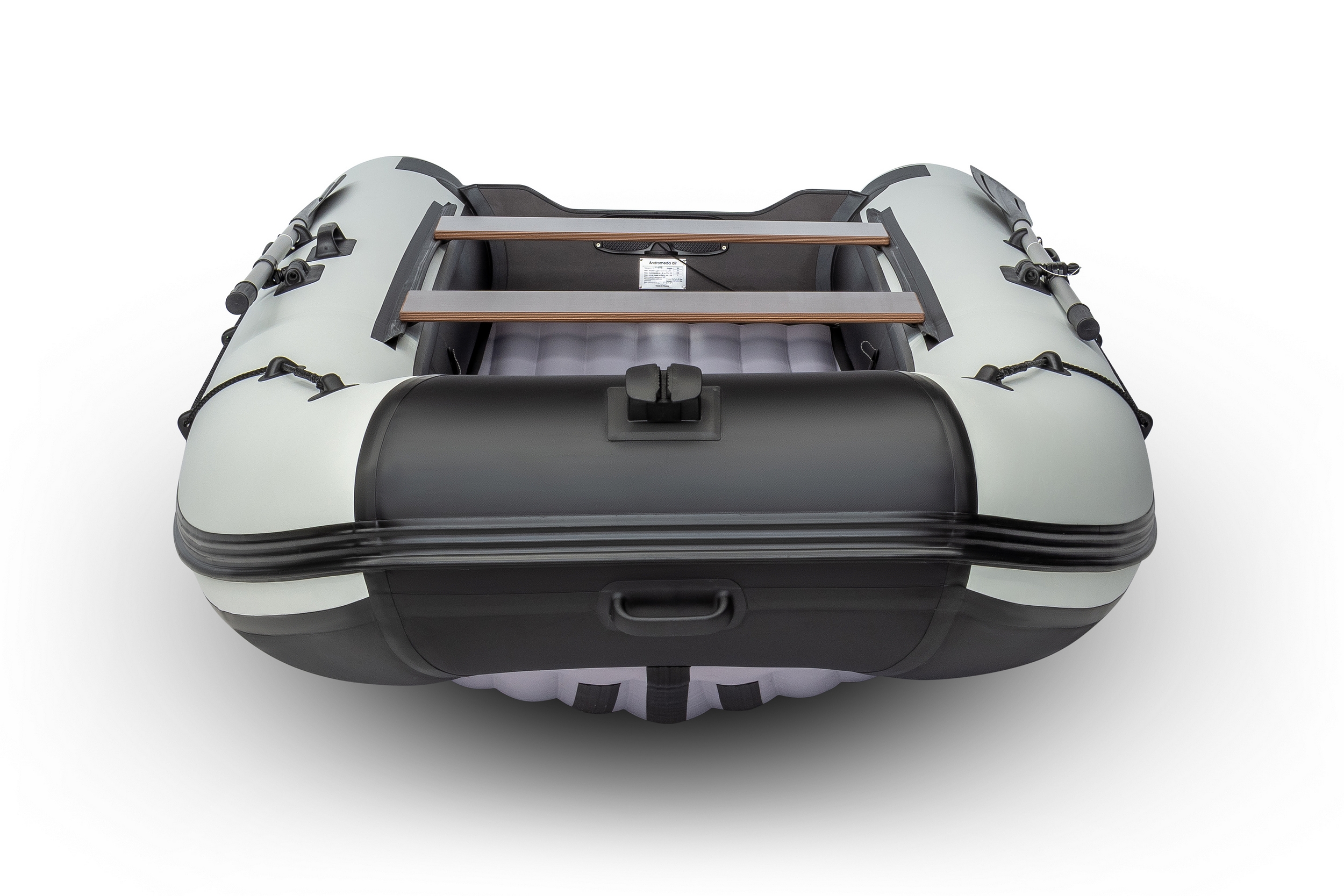 Весь модельный ряд лодок Андромеда Air оснащается высококачественной фурнитурой собственного производства. Компания располагает обширной базой для литья пластмасс, укомплектованной австрийским и итальянским оборудованием. Фурнитура изготавливается на современном термопластавтомате. В производстве используются только высококачественные полимеры проверенных производителей. Ручки, шайбы, пластиковые элементы весла и поворотной уключины, фиксаторы сидений, держатели транца и концевики баллона разрабатывались специально для условий повышенных нагрузок, имеют хорошие показатели испытаний на разрыв и излом.