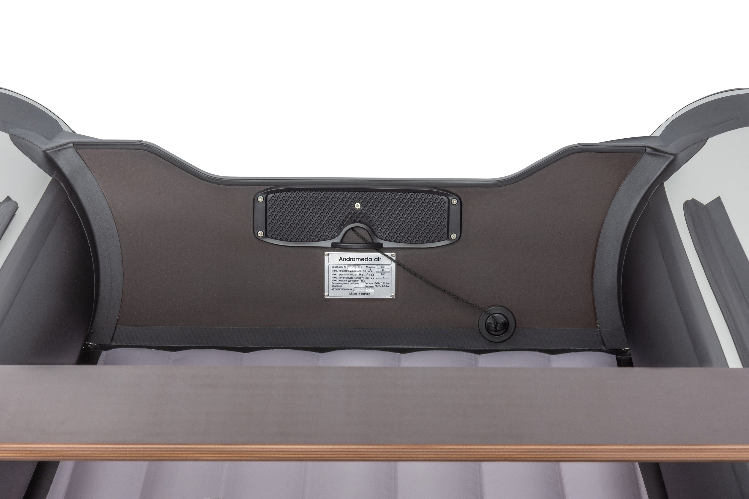Лодка ПВХ Андромеда Air 360 — вторая по длине модель линейки. Отлично подойдёт для комфортной рыбалки 4 человек. Конструкция лодки выполнена в виде 3-секционного баллона, а отдельный надувной отсек значительно улучшает скоростные характеристики модели. Материал производства — высокопрочный ПВХ плотностью 1000 г/кв.м на баллонах и 1100 г/кв.м на днище. Материал с двусторонним полимерным покрытием, а также с добавлением термопластичного полиуретана. Это значит, что лодка готова к большим перепадам температур и спокойно выдержит рыбалку даже на 30-градусной жаре. Общая грузоподъёмность лодки составляет 650 кг, при собственном весе всего 40 кг. Для дополнительной безопасности модель оснащена подрывным и сливным клапанами, а оптимальная мощность мотора для Андромеда Air 360 составляет 18 л. с. Из интересных деталей можно отметить яркий контрастный дизайн модели, который делает её заметнее на воде.