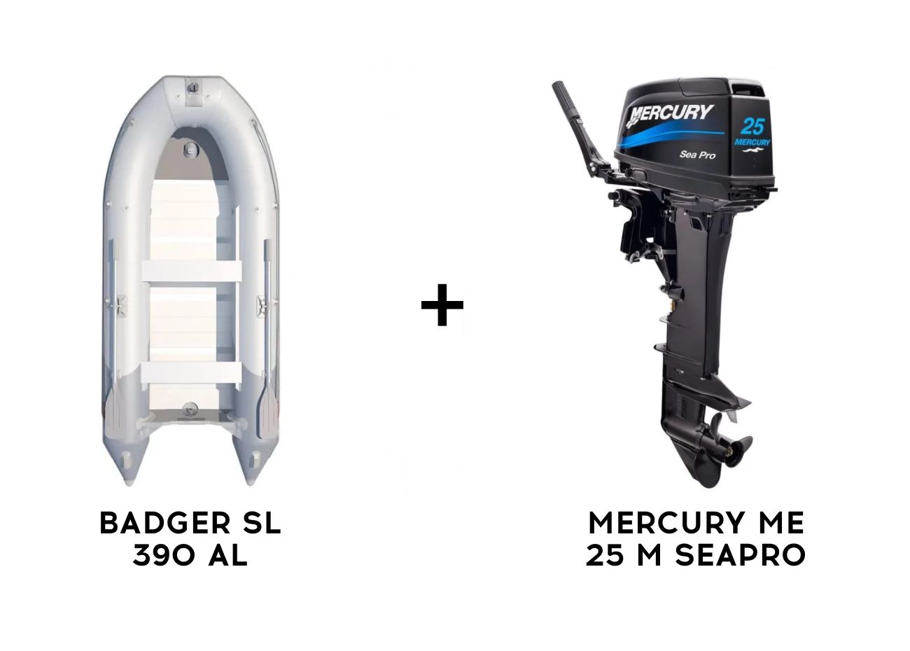 Купить такой товар как Лодка ПВХ BADGER SL 390 AL + 2х-тактный лодочный мотор MERCURY ME 25 M SEAPRO в Хабаровске недорого – вполне реально, ведь trofey27 – крупнейший интернет-магазин со своими шоурумами и складами практически в каждом крупном городе России, благодаря чему мы как правило, работаем напрямую с заводами-производителями без посредников.