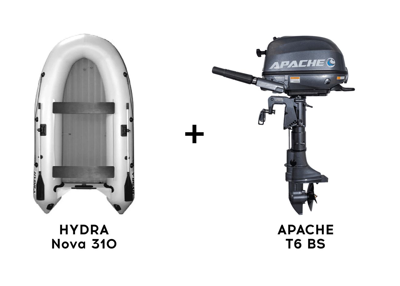 Оплата, самовывоз и доставка | Лодка ПВХ HYDRA Nova 310 «Оптима 1200» + 2х-тактный лодочный мотор APACHE T6 BS