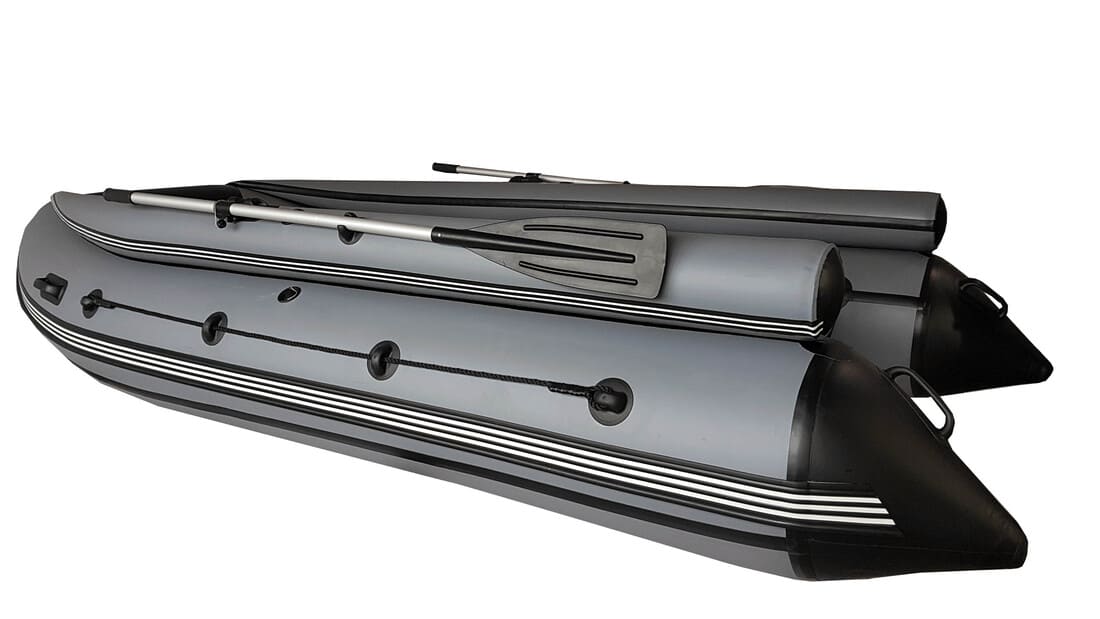 Эта лодка отличается повышенной плотностью баллонов и днища 850 г/м2, обеспечивая уверенность, устойчивость и стабильность внутри судна, избавляя от ощущения, будто сидишь на скамейке над водой. Жесткость днища при надувании достигается не из-за давления, а благодаря установленным вертикально и продольно внутри дна переборкам, изготовленным из ткани с нулевым остаточным удлинением.