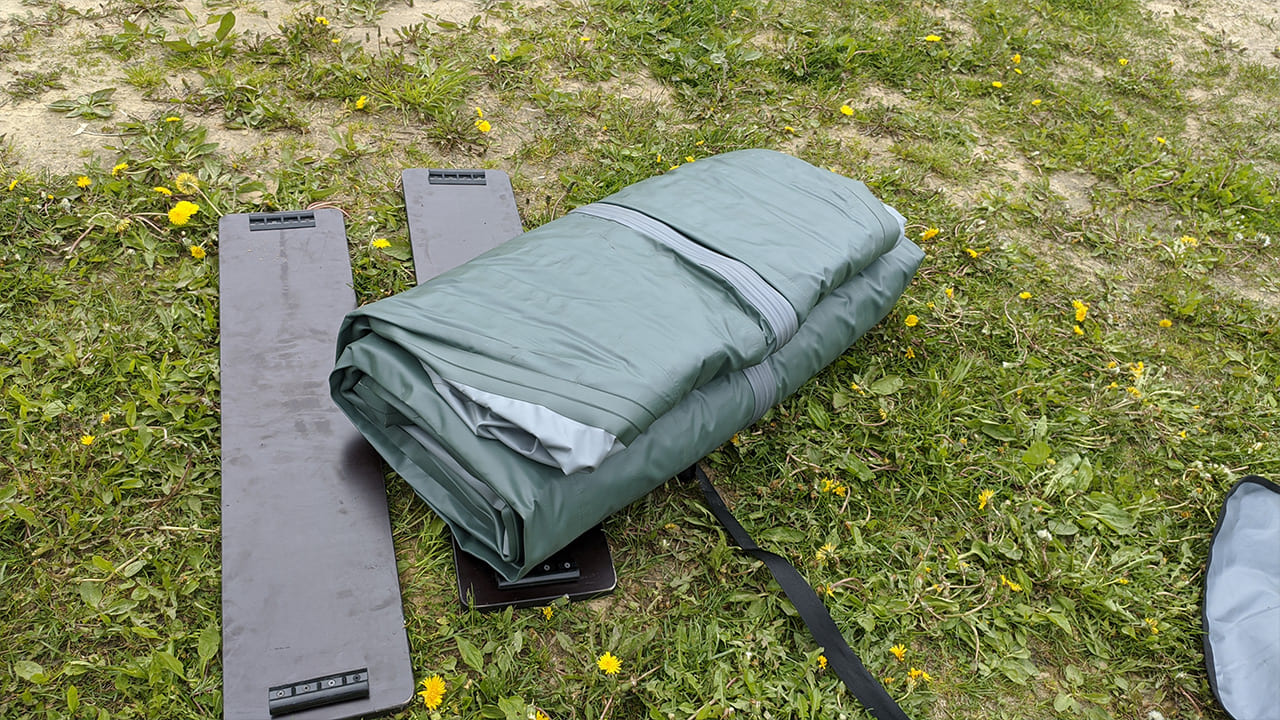 Изготовлена из легкой, но надежной ткани с усиленным кордом. Очень компактная в сборке. Несмотря на легкий вес у лодки большие баллоны и вместительный кокпит.