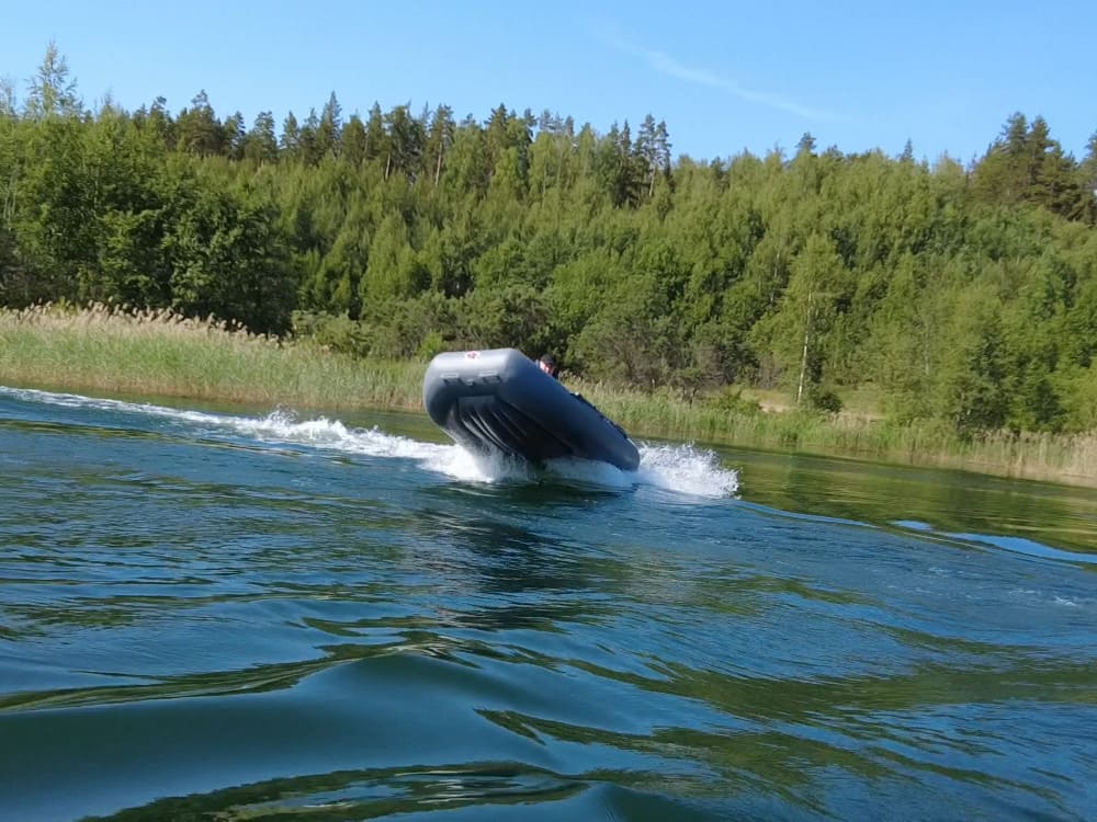 За счет проверенной годами геометрии баллонов и опорным реданам лодка отлично держит курс, не верткая. Легко выходит на глисс, не кобрит. За счет малой килеватости не капризна к развесовке.