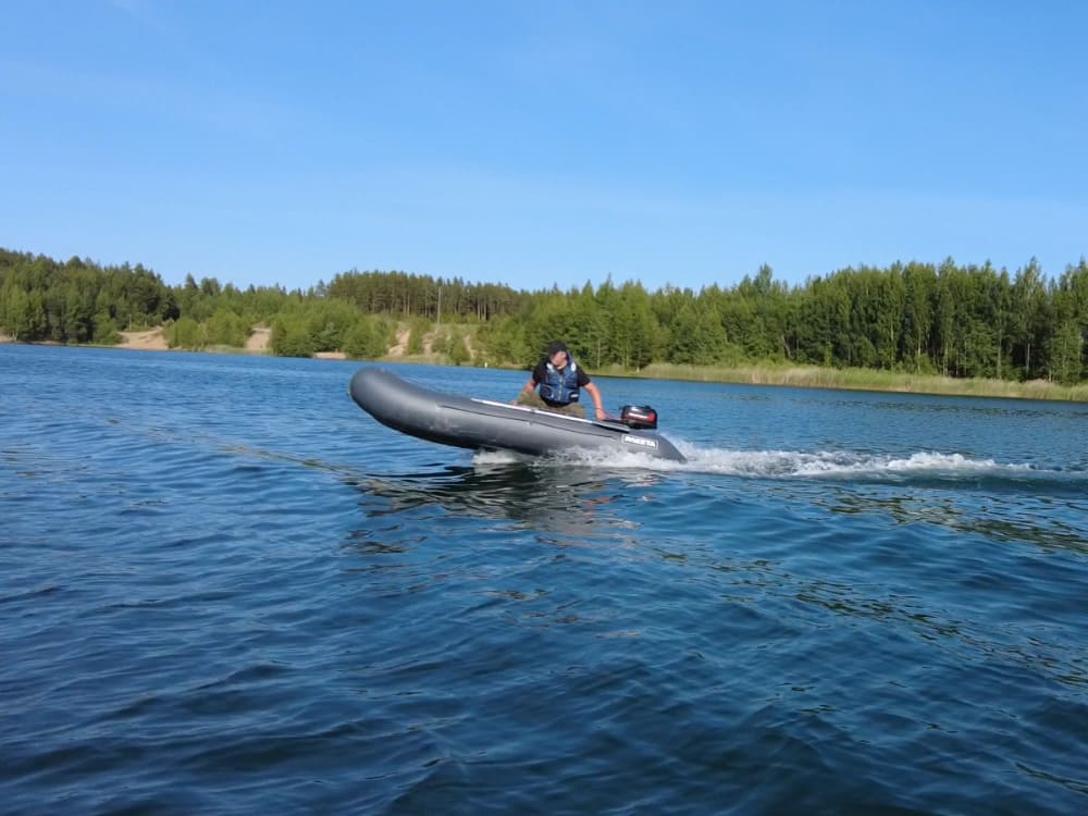За счет проверенной годами геометрии баллонов и опорным реданам лодка отлично держит курс, не верткая. Легко выходит на глисс, не кобрит. За счет малой килеватости не капризна к развесовке.