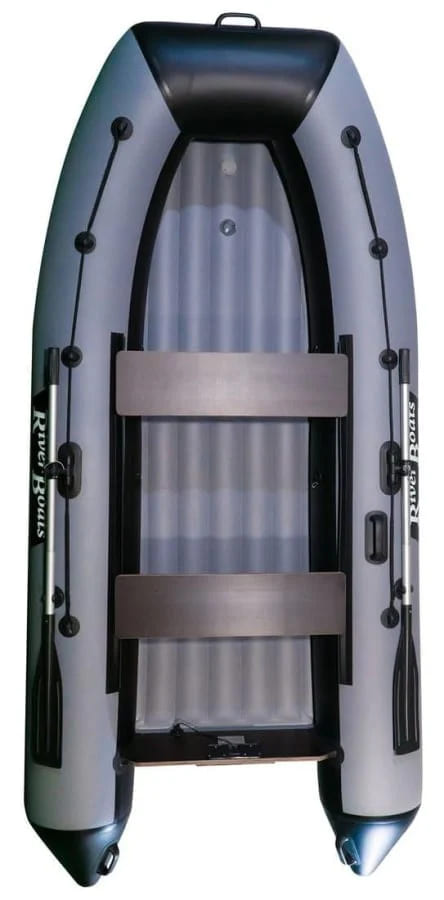 - Удобство. Характерный для всех лодок RiverBoats леерный трос проходит по верхней поверхности баллона лодки. Передвижные сиденья фиксируются к баллонам креплениями ликтрос-ликпаз и могут перемещаться в удобное для Вас положение. На носу установлена ручка для переноски. Дополнительные ручки для переноски имеются на концевиках баллонов, ручка водителя — посередине баллона справа.