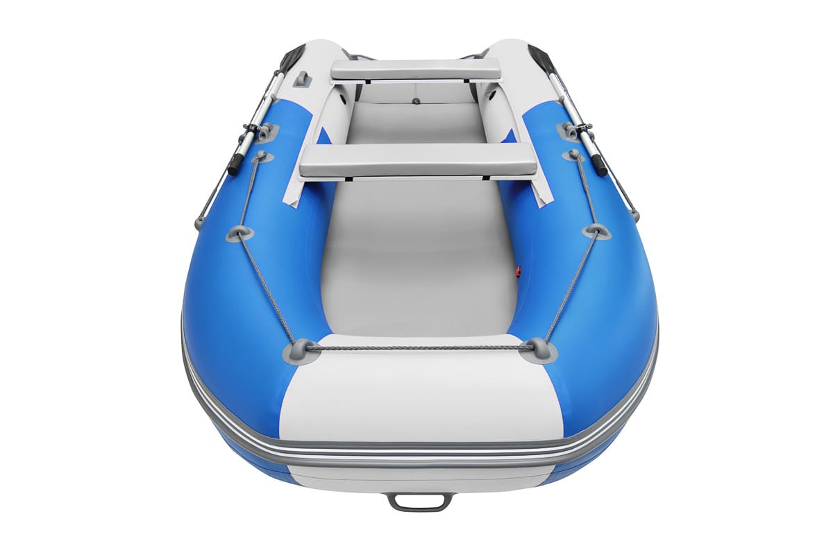 Неразборный корпус лодки и дна позволяет произвести сборку и разборку быстро, и не займет у Вас много времени и сил, Вам останется только наполнить надувные секции воздухом, и Ваша лодка готова к эксплуатации, время сборки лодки менее 15 минут. Независимые отсеки надувного дна, при наполнении их воздухом преобразуют дно в V - образную форму, что дает лодке превосходную управляемость по волне, а смещенный транец - просторный кокпит и небольшой вес лодки
