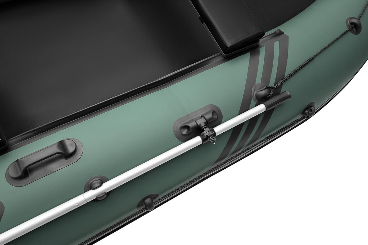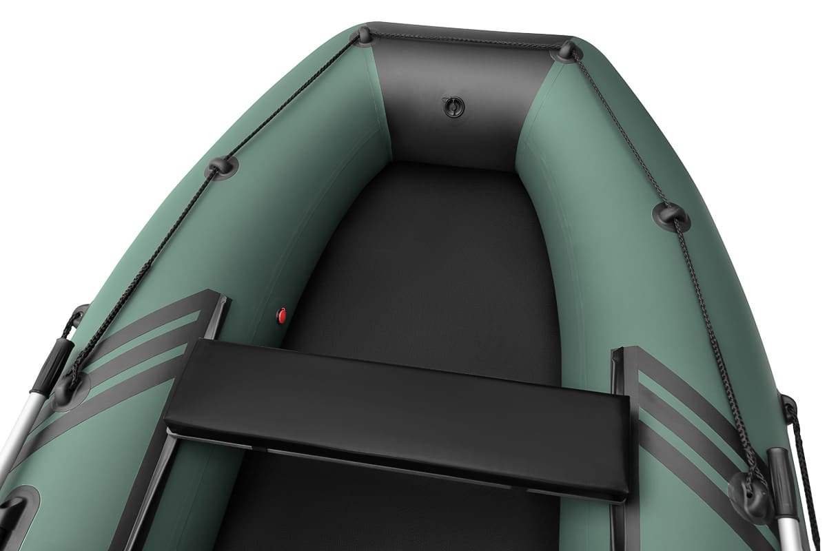 Неразборный корпус лодки и дна позволяет произвести сборку/разборку быстро и не займет много сил и времени, Вам останется только наполнить надувные секции воздухом? и Ваша лодка готова к эксплуатации, время сборки менее 20 минут. Независимые отсеки надувного дна, при наполнении их воздухом преобразуют дно в V - образную форму, что дает лодке превосходную управляемость по волне. Значительно малый вес по сравнению с лодками с жесткими полами. Просторный и глубокий кокпит разместит все Ваше оборудование и сделает отдых комфортным. Регулируемые положения сидений за счет системы передвижных сидений позволяет разместиться в лодке где Вам удобно.