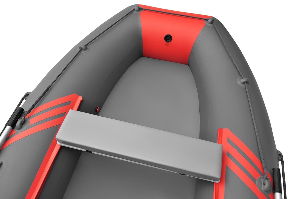 Неразборный корпус лодки и дна позволяет произвести сборку/разборку быстро и не займет много сил и времени, Вам останется только наполнить надувные секции воздухом? и Ваша лодка готова к эксплуатации, время сборки менее 20 минут. Независимые отсеки надувного дна, при наполнении их воздухом преобразуют дно в V - образную форму, что дает лодке превосходную управляемость по волне. Значительно малый вес по сравнению с лодками с жесткими полами. Просторный и глубокий кокпит разместит все Ваше оборудование и сделает отдых комфортным. Регулируемые положения сидений за счет системы передвижных сидений позволяет разместиться в лодке где Вам удобно.