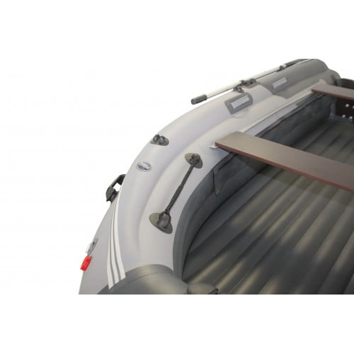 Эта моторная лодка отличается повышенной плотностью баллонов и днища 1100 г/м2, обеспечивая уверенность, устойчивость и стабильность внутри судна, избавляя от ощущения, будто сидишь на скамейке над водой. Кроме того, безопасность пассажиров дополнительно обеспечивается натянутым вдоль борта леерным ограждением.