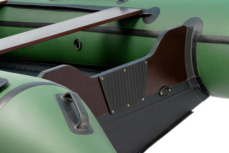 Конструкция лодки исполнена в виде 3-х секционного надувного баллона. Для придания килевой формы днища конструкцией предусмотрен отдельный надувной баллон, улучшающий скоростные и мореходные характеристики лодки.