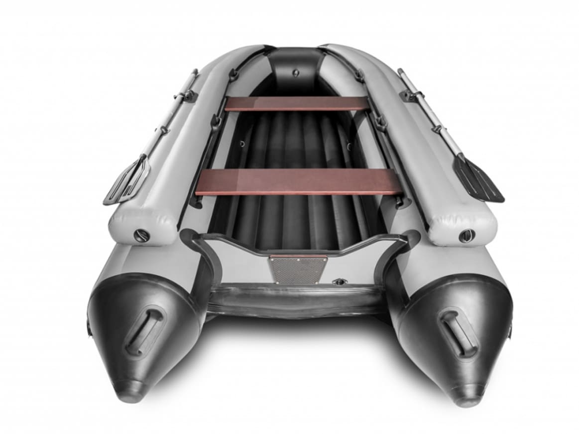 Лодка комплектуется надувным дном низкого давления, которое обеспечивает жесткость корпуса лодки, повышая устойчивость на воде и улучшая управляемость. Кроме того, продольные перегородки выполняют роль дополнительных ребер жесткости: пол практически не уступает по прочности твердым вариантам.