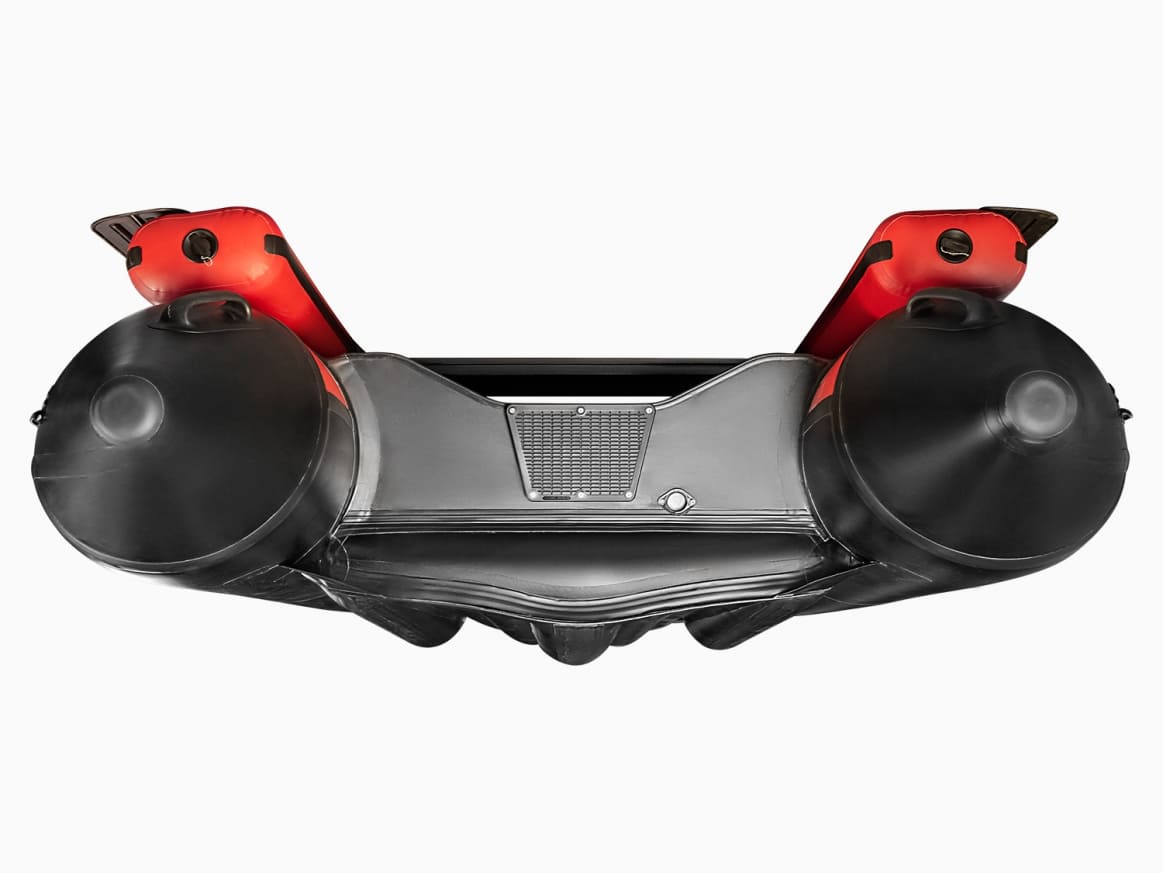 Лодка комплектуется надувным дном низкого давления, которое обеспечивает жесткость корпуса лодки, повышая устойчивость на воде и улучшая управляемость. Кроме того, продольные перегородки выполняют роль дополнительных ребер жесткости: пол практически не уступает по прочности твердым вариантам.