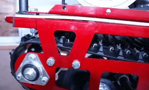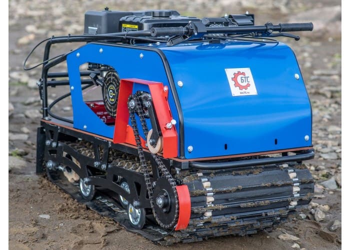 Модель оснащена гусеницей шириной 500 мм. Гусеница в сочетании с катковой подвеской способна проходить спокойно по льду и даже по территории без снега.