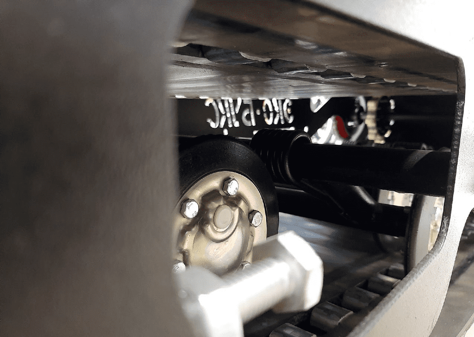 - Классическая гусеница шириной 500 мм, катковая подвеска и регулируемый угол атаки обеспечивают оптимальную проходимость и возможность всесезонного использования.