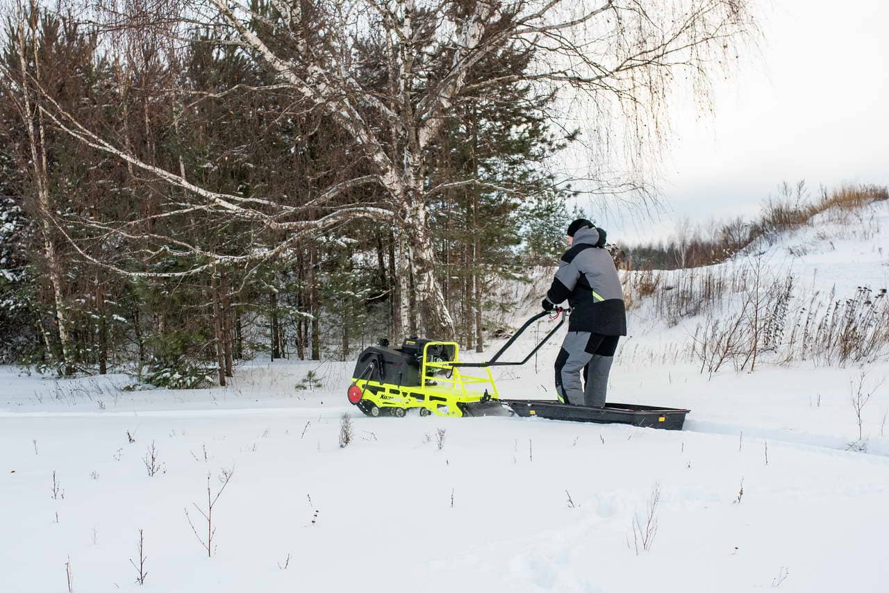 В основе техники лежит четырехтактный бензиновый мотор мощностью 15 л.с. Трансмиссия вариаторного типа "Сафари" позволяет плавно менять крутящий момент. Снабжен гнутой рамой, изготовленной из цельного листа металла. Силовая установка размещена спереди для повышения проходимости агрегата. Катковая подвеска подходит для перемещения по любому покрытию. Предусмотрена возможность регулировки угла атаки.