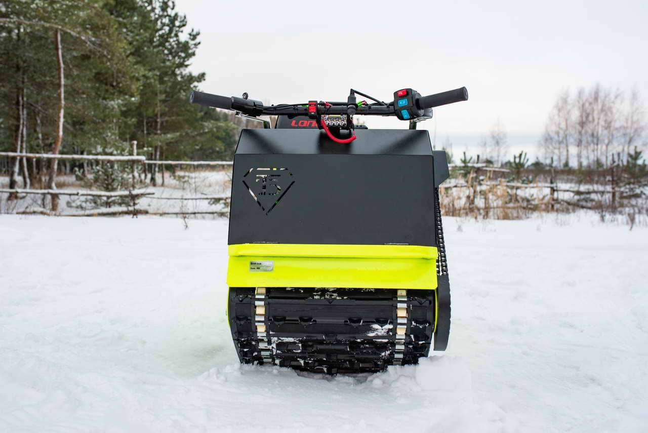 Собран на базе гусеницы шириной 500 мм. Оборудован вместительный багажник, в котором располагаются инструменты и прочие вещи. Комплектуется светодиодной фарой, защитой цепи, брызговиком и отбойником. Аккумуляторная батарея не включена в базовое оснащение.