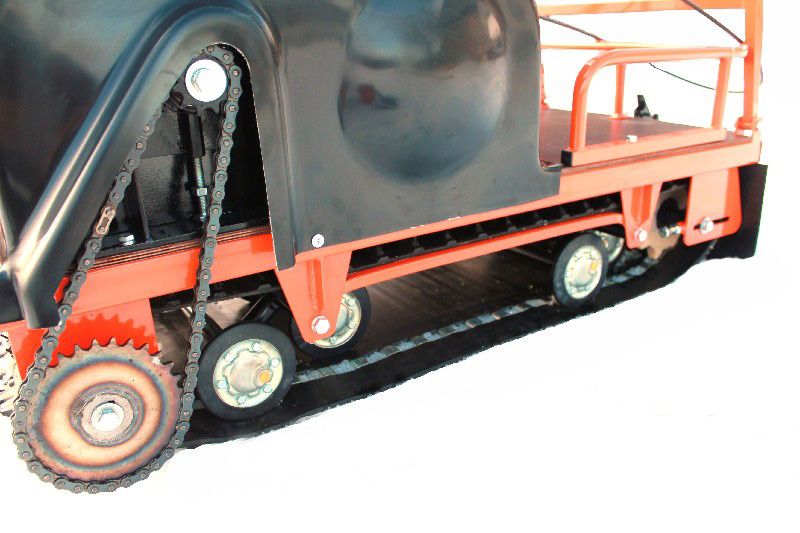 В конструкции мотовездехода используется цельная резиновая гусеница шириной 500 мм. Площадь опоры гусеницы улучшает тяговые характеристики, проходимость и устойчивость буксировщика.