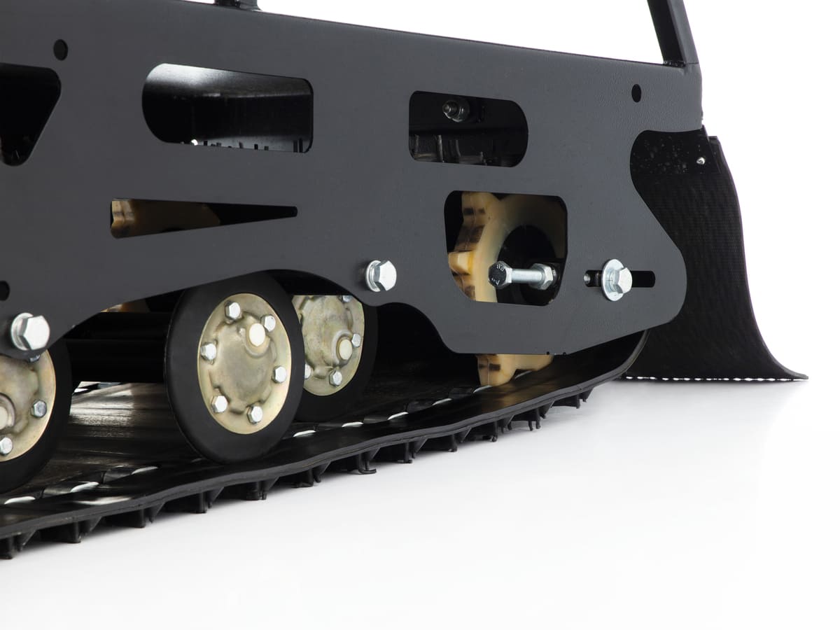 Универсальная катковая подвеска, с регулировкой угла атаки и возможностью установки склиз, позволяет эксплуатировать мотобуксировщик по любым поверхностям: снег, лед, болото, трава и т.д.