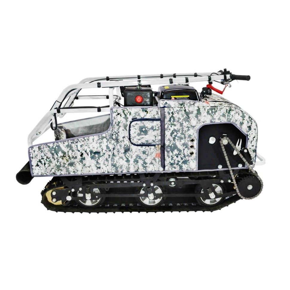 Мотособака Койра Богатырь 20 E превосходно подходит для сложных снежных маршрутов! Идеальна для зимней и весенне-осенней эксплуатации. Благодаря большим и прочным алюминиевым колесам в подвеске, отлично едет как по глубокому снегу или по снежной каше (снег с водой), а также уверенно ведет себя на голом льду.