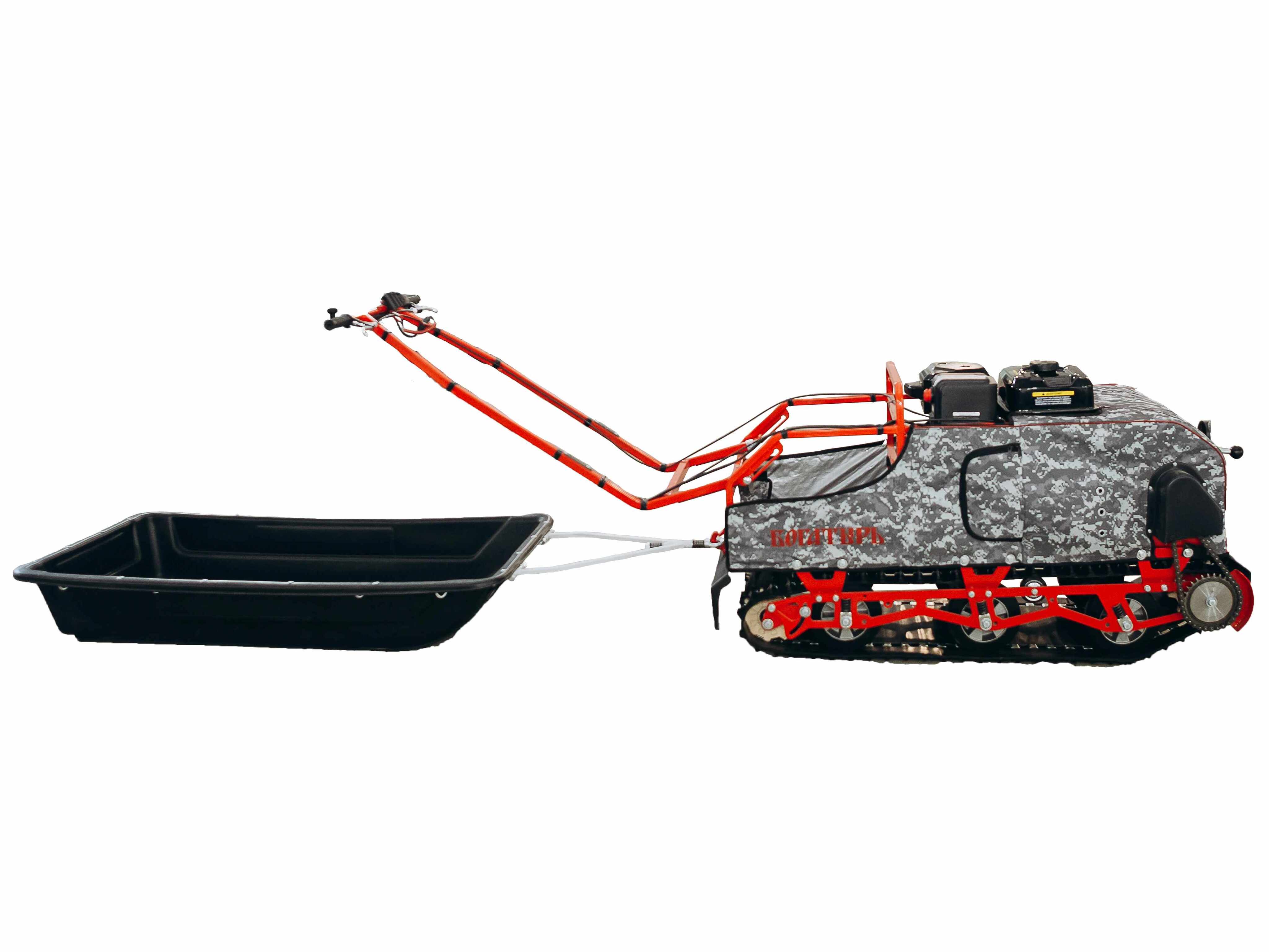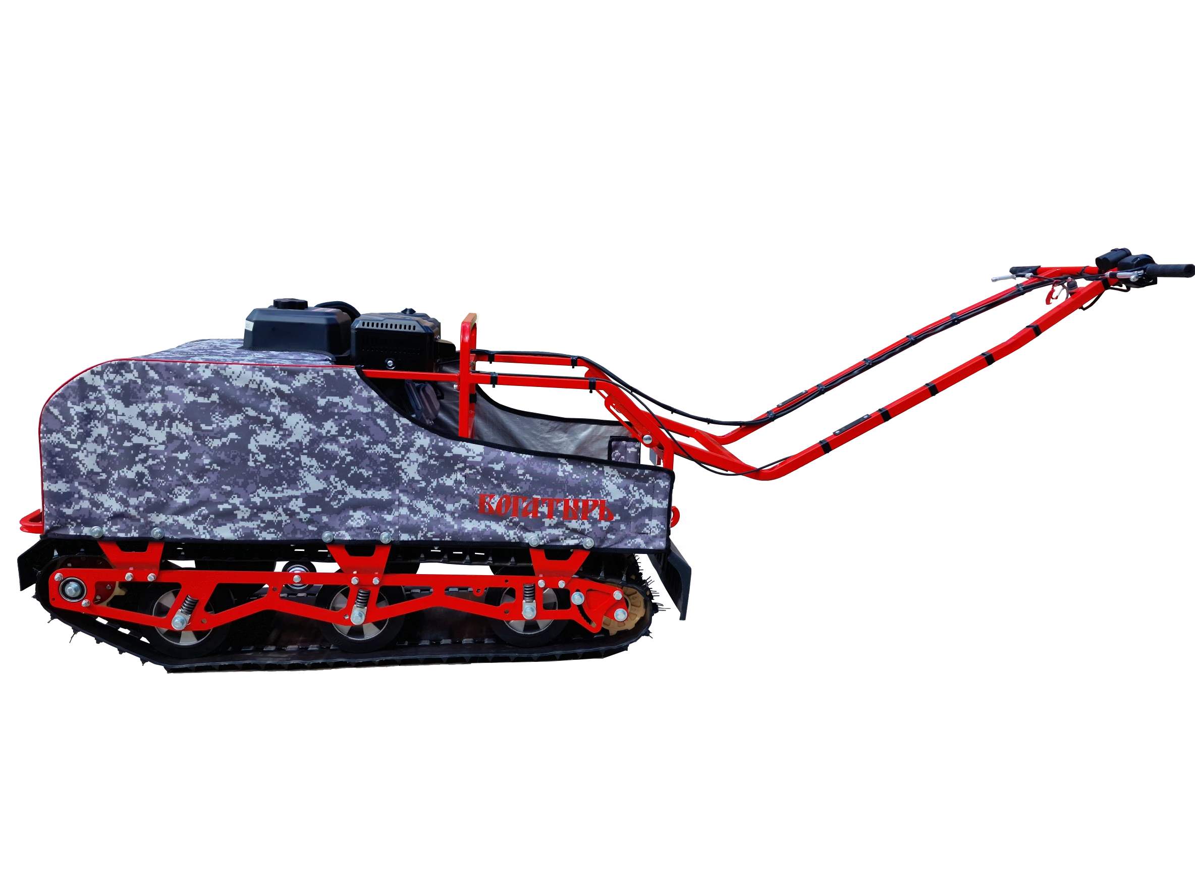 Никакого снега в гусенице, никакого обмерзания, легкий вес и превосходная плавность хода.Покупая мотобуксировщик БОГАТЫРЬ Вы можете быть уверены в непревзойденном качестве, легкости управления и высоком уровне комфорта при езде - благодаря удобной компоновке, удобному рулю, и легкому весу.