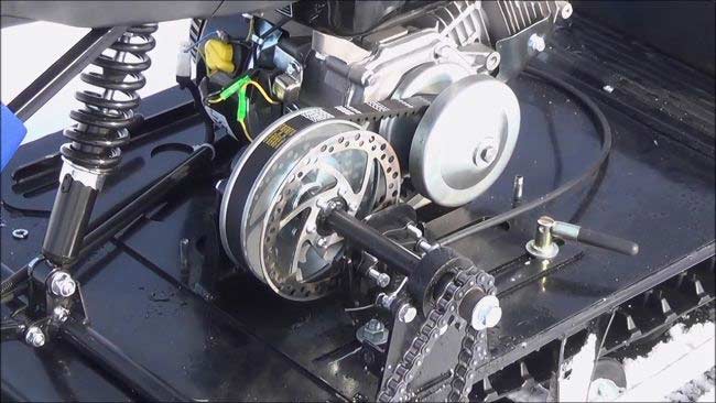 На всех буксировщиках серии Сигма установлен дисковый механический тормоз. Он предназначен не только для непосредственного торможения буксировщика, но и для более комфортного переключения коробки реверса, аналогично снегоходу Буран.
